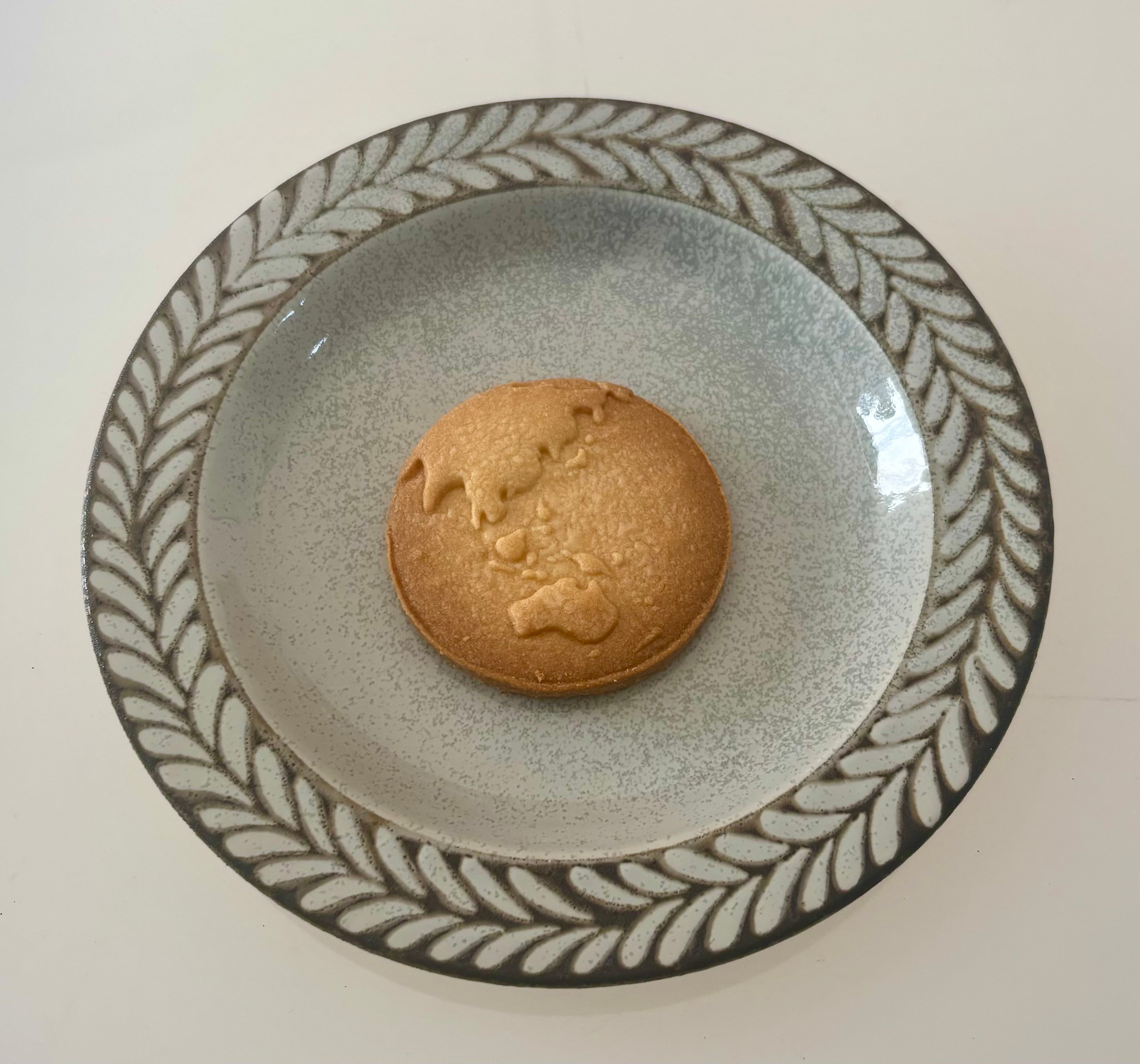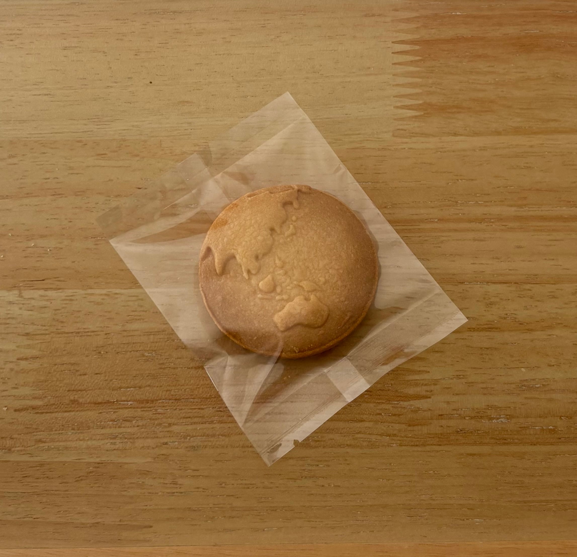 宇宙好きな当店にちなんで地球型に型抜きして焼き上げました。